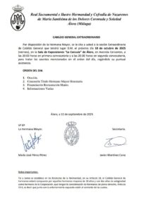 Los actos llevados a cabo con motivo del XXV Aniversario de Coronación Canónica de la Virgen de los Dolores ha pasado a la historia de nuestra Cofradía y al imaginario colectivo de nuestro municipio. Para que esto procediera así, ha sido necesario la labor desinteresada de muchas personas. Por consiguiente, nuestra Hermana Mayor, Dª. María