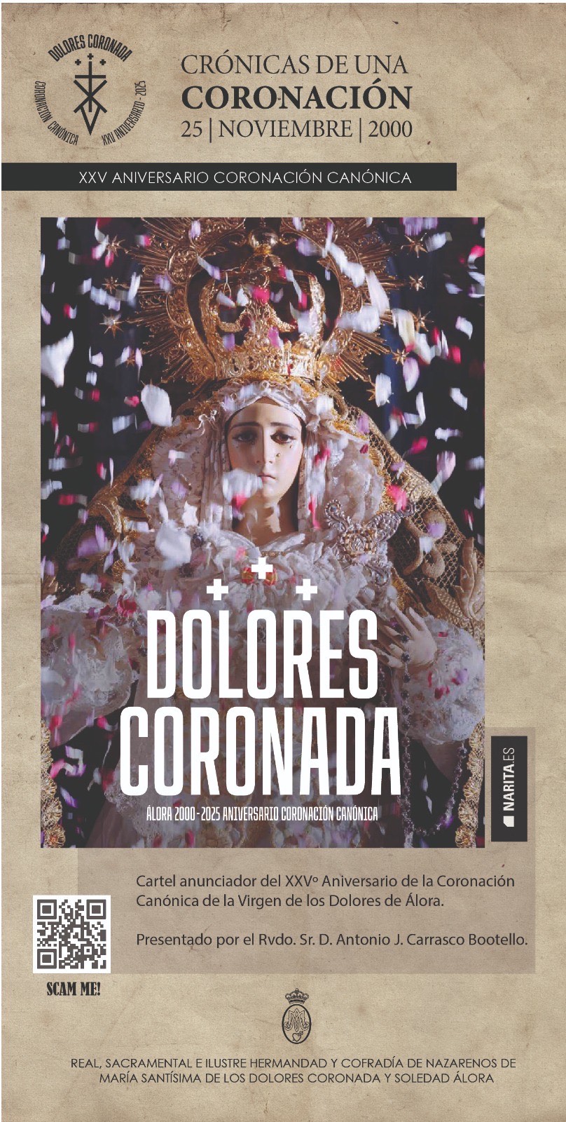 El pasado viernes, 3 de octubre de 2025, fue sin duda un momento que tanto hermanos y devotos de la Virgen de los Dolores; como los vecinos de Álora, llevarán siempre en el recuerdo. De la misma forma, deja señalado el calendario del legado histórico de nuestra Hermandad, dentro del marco de actos del XXVº Aniversario de Coronación Canónica de nuestra Sagrada Titular.